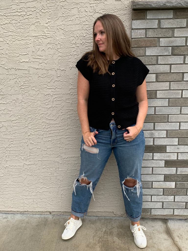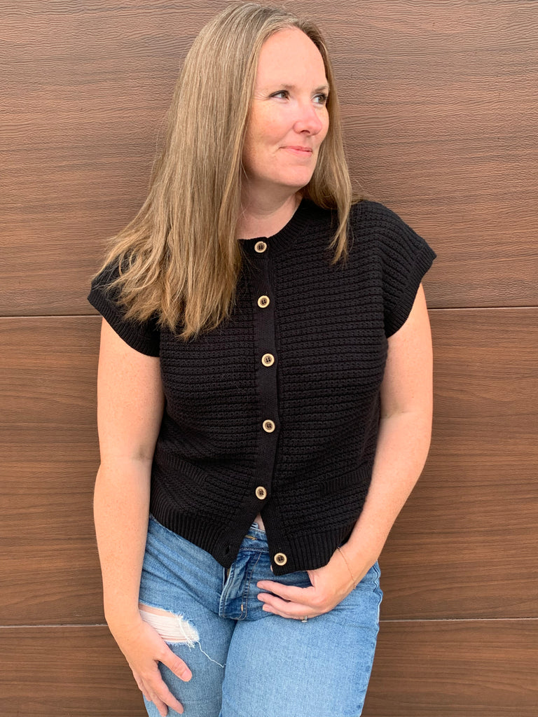 Short Sleeve Drop Shoulder Button Down Cardigan Vest